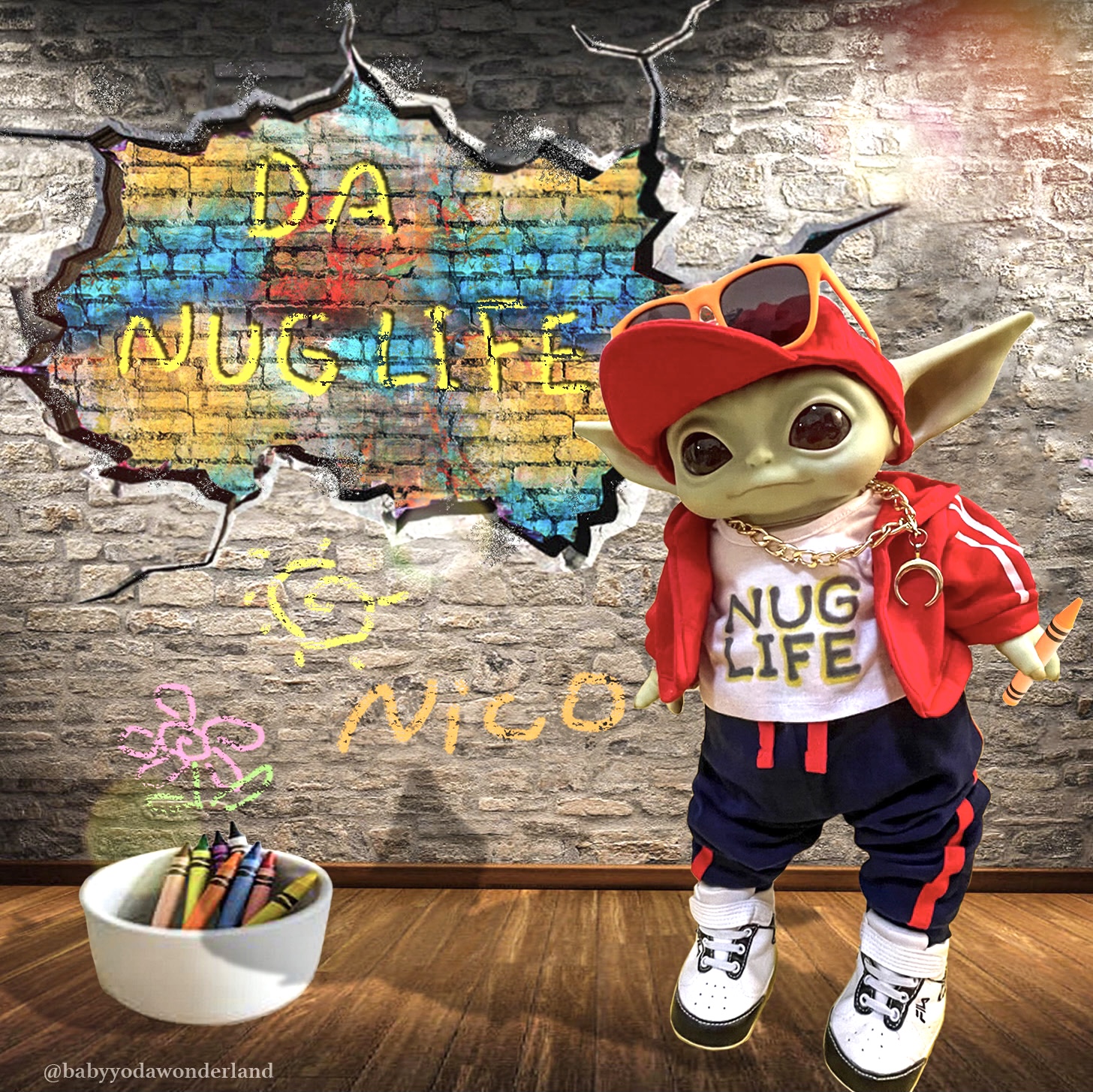 Da Nug Life (DNL) is a group of cool Baby Yoda who loves old school hip-hop or any other music & knows how to have a good time at The Happy Froggy. They express their positivity & creativity in their posts on Instagram. Those adorable green babies are spreading positive & happy vibes throughout the Galaxy!